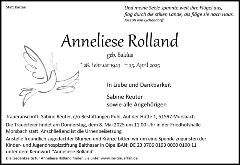 Trauerfeier u. Urnenbeisetzung, Friedhofshalle Morsbach
