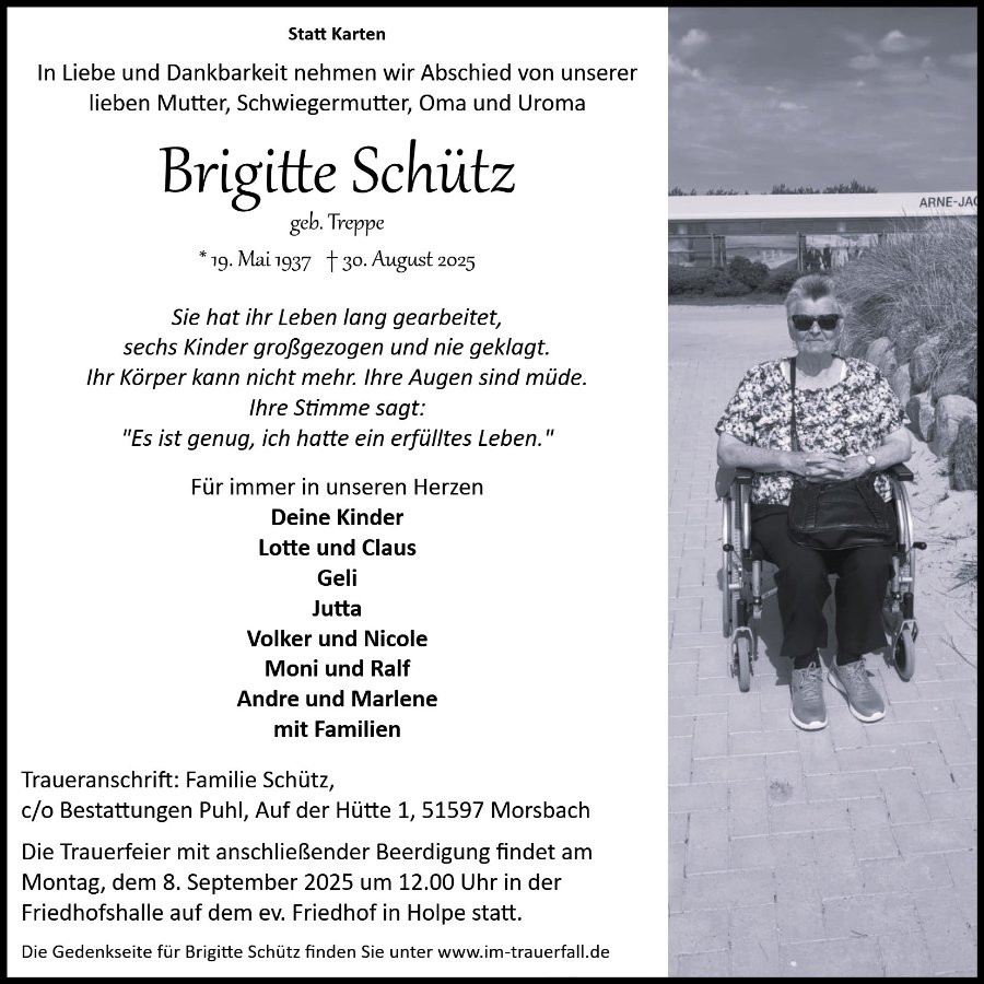 Brigitte Schützgestorben am 30. August 2025