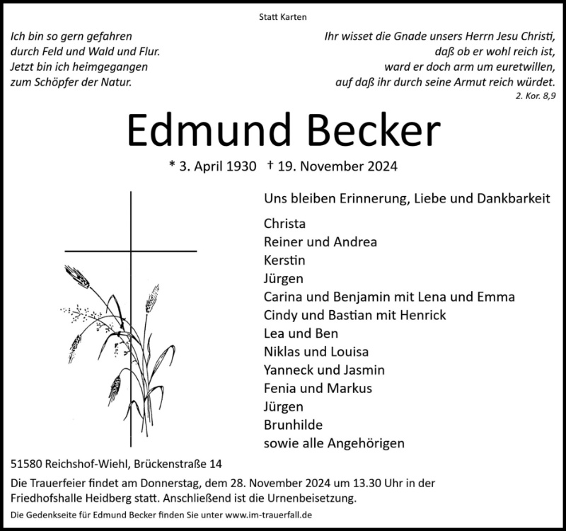 Trauerfeier u. Urnenbeisetzung, Friedhofshalle Heidberg