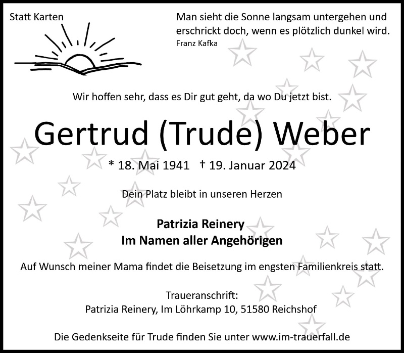 Sprechen Sie im Kondolenzbuch den Hinterbliebenen Ihr Beileid aus und teilen Sie persönliche Gedanken und Erinnerungen mit anderen.
