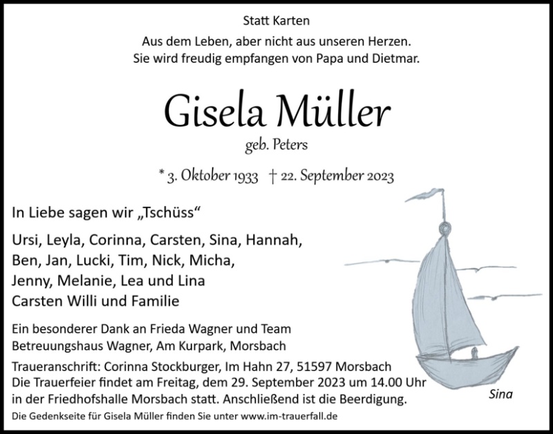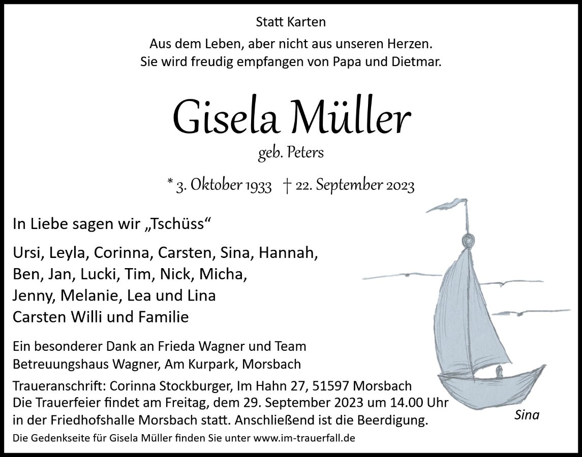 Herzliches Beileid zum Tod von Gisela.