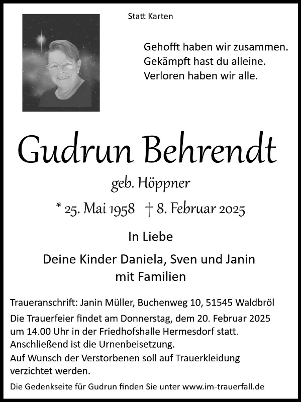 Trauerfeier u. Urnenbeisetzung, Friedof Hermesdorf