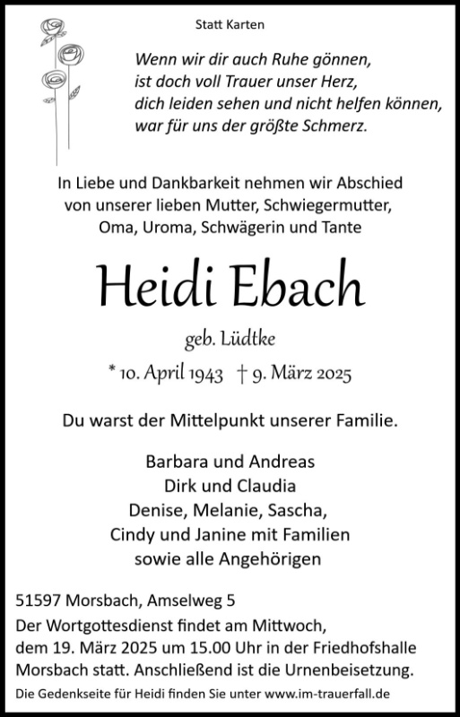 Trauerfeier u. Urnenbeisetzung, Friedhofshalle Morsbach