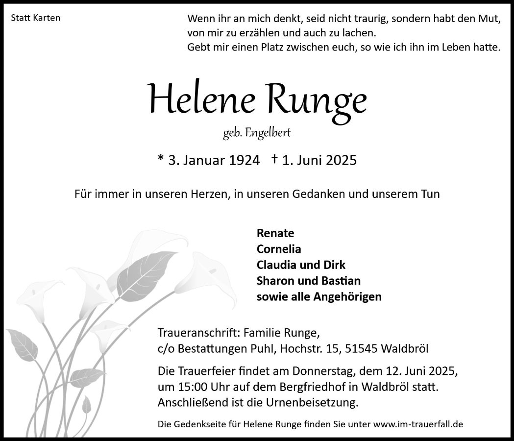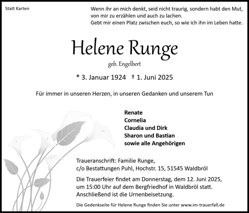 Trauerfeier u. Urnenbeisetzung, Friedhof Waldbröl