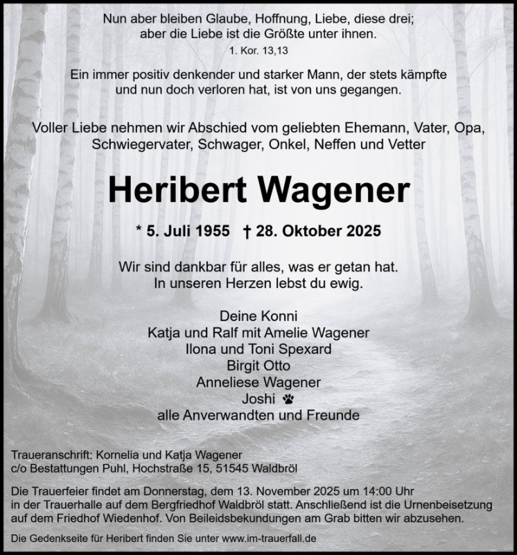 Trauerfeier u. Urnenbeisetzung, Friedhofshalle Waldbröl