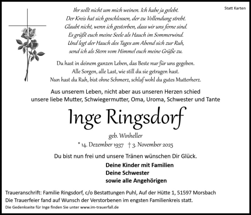 Wer im Herzen seiner Lieben lebt, ist nicht tot , er ist nur fern. Ruhe in Frieden