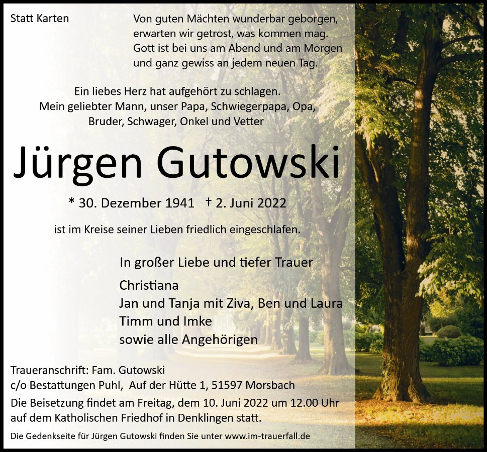 Jürgen Gutowskigestorben am 2. Juni 2022