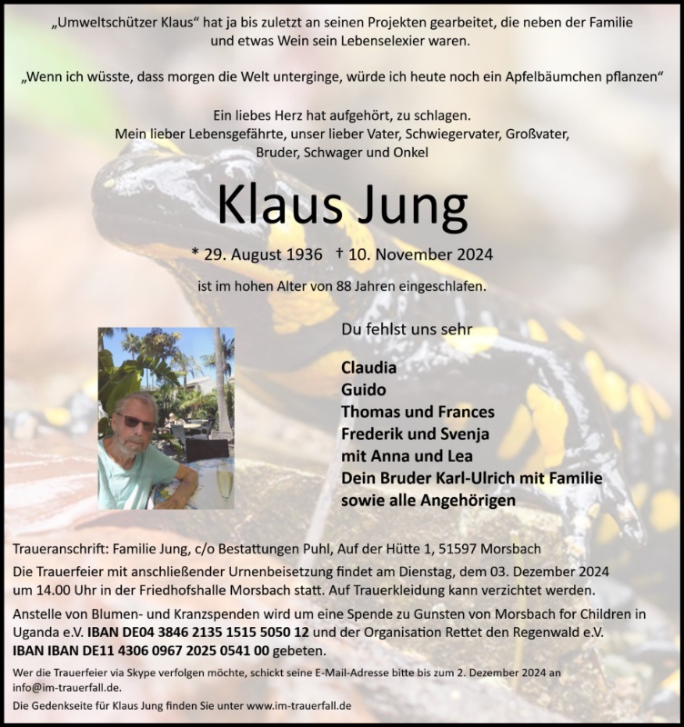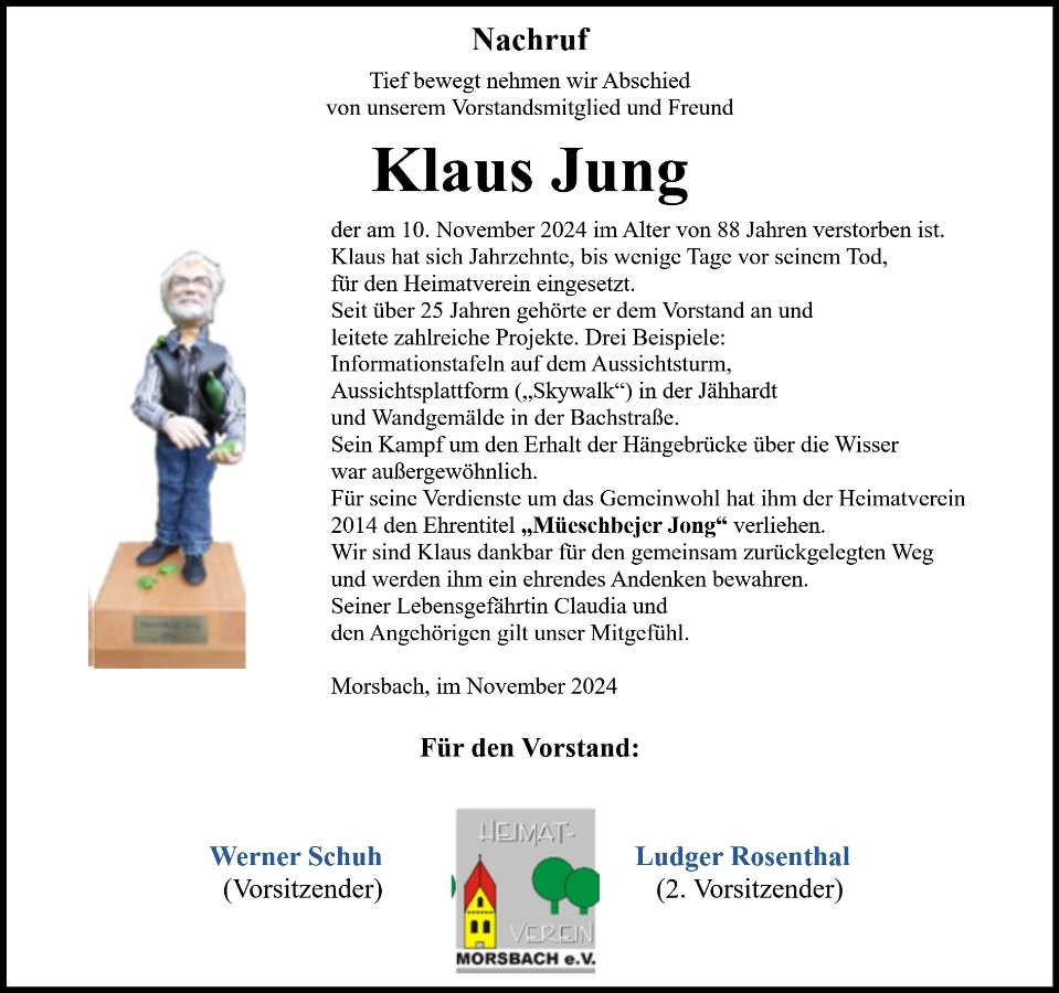 Du warst nicht nur mein Vorstandskollege im Heimatverein, sondern vor Allem mein verlässlicher Freund. Gerne denke ich an gemeinsame Projekte, Geburtstagsfeiern und unsere Skatrunden zurück.