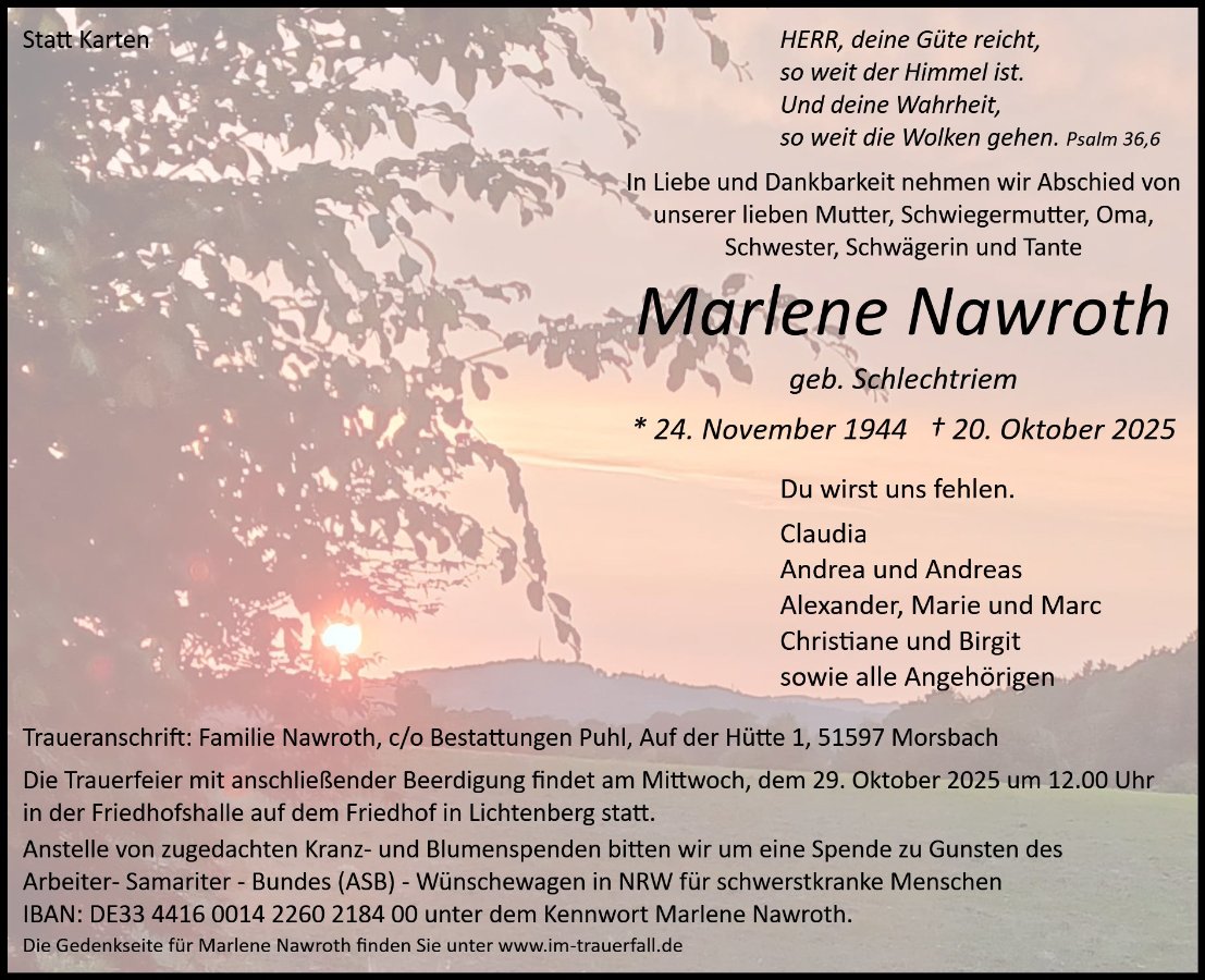 Marlene Nawrothgestorben am 20. Oktober 2025