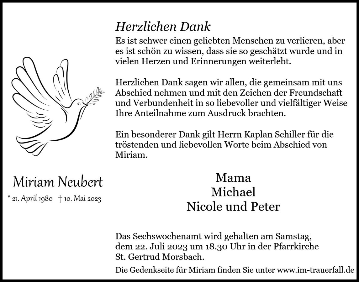 Miriam Neubertgestorben am 10. Mai 2023