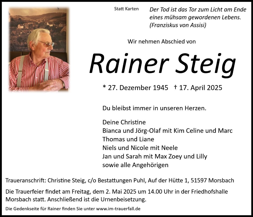 Rainer Steiggestorben am 17. April 2025