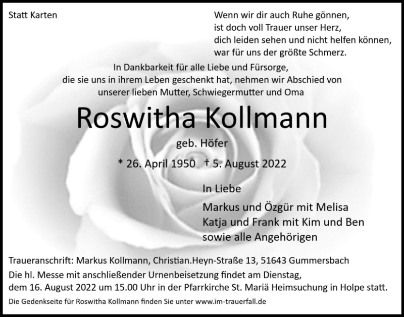 Roswitha Kollmann geb. Höfer