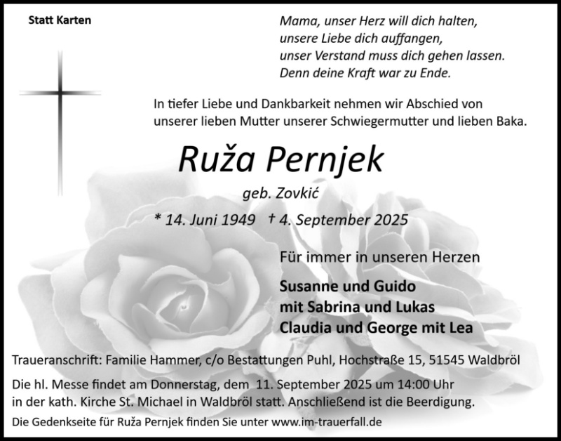 Ich werde Ruza als eine sehr liebenswerte, immer freundliche, familiäre und strake Persönlichkeit in Erinnerung behalten.