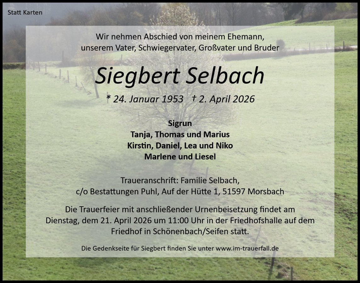 wir wünschen Ihnen von Herzen viel Kraft, dass Sie Menschen um sich haben, die Ihnen in dieser schweren Zeit beistehen und Halt geben. Zusätzlich können Sie auf dieser Gedenkseite Erinnerungen teilen und so das Andenken gemeinsam wachhalten.