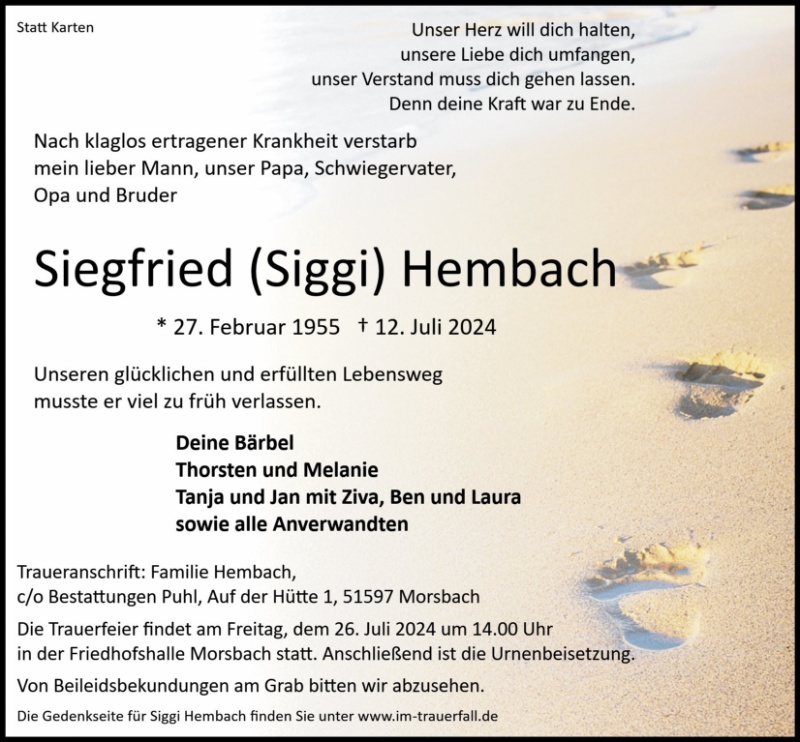 Trauerfeier u. Urnenbeisetzung, Friedhofshalle Morsbach