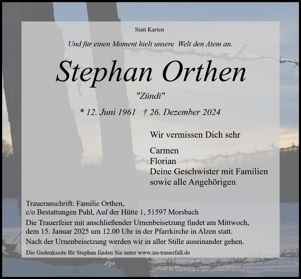 Stephan Orthengestorben am 26. Dezember 2024