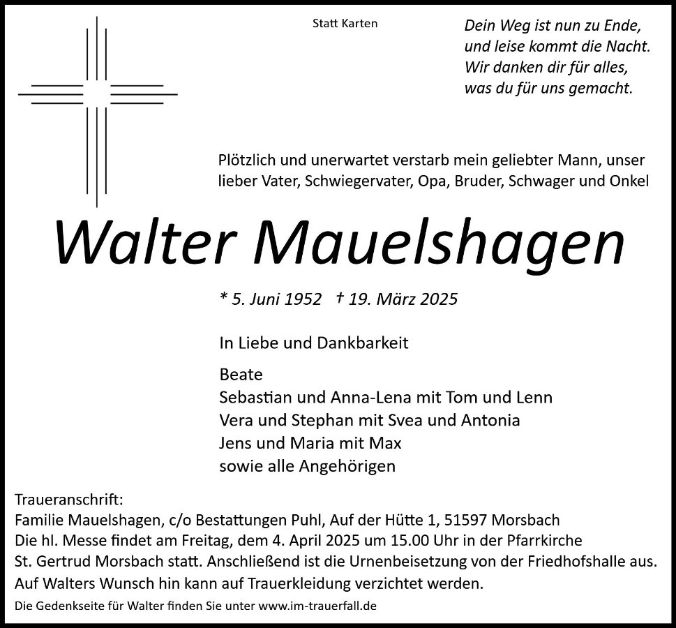 Walter Mauelshagengestorben am 19. März 2025